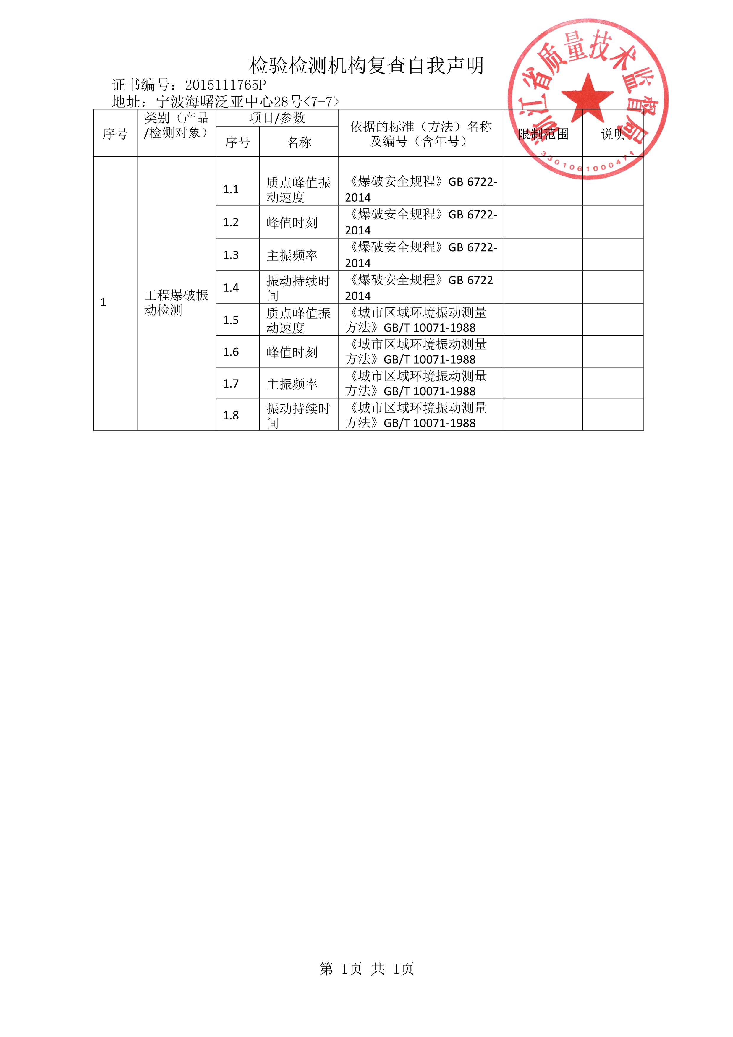 宁波赛弗爆破检测有限公司成立于2013年2月,并于2015年取得国家资质认定计量认证证书(CMA),是国内为数不多的专业的爆破振动检测公司之一,是符合《爆破安全规程》GB6722-2014标准要求的爆破振动第三方检测单位。